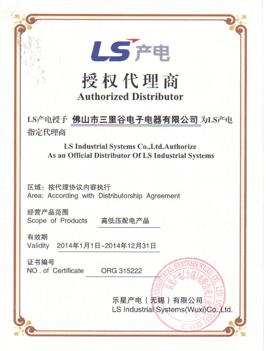 LS產(chǎn)電授權(quán)